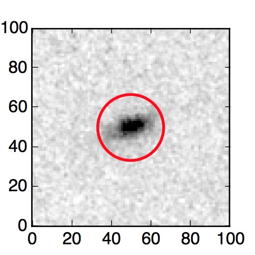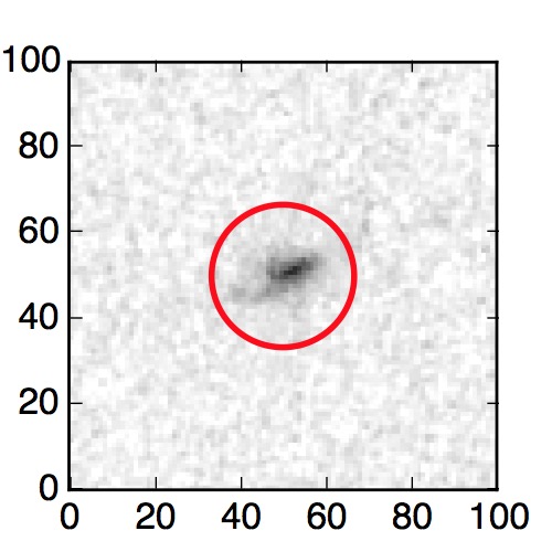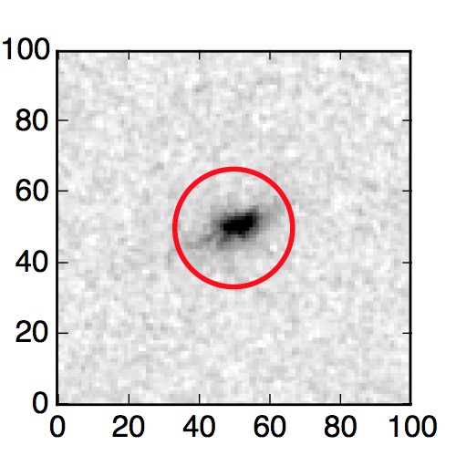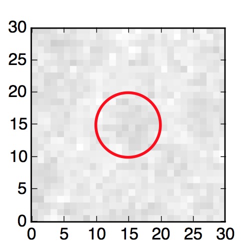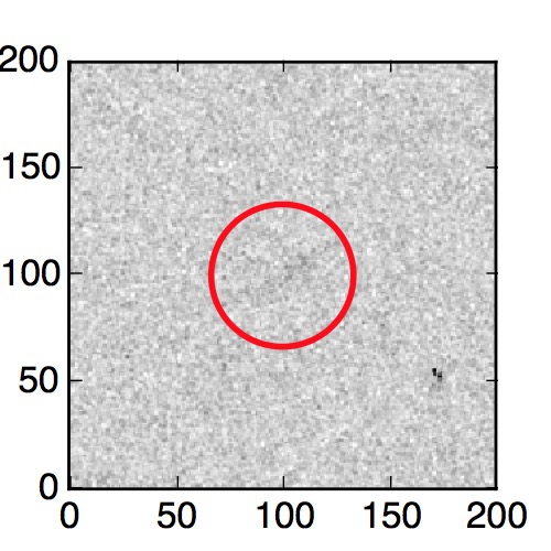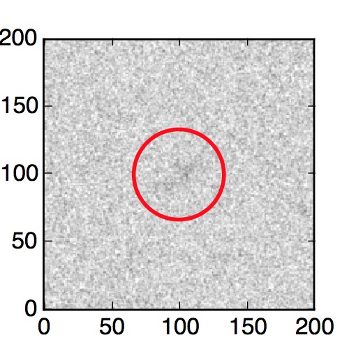The red circle in the various panels is 1" in radius. The images are 6"x6".