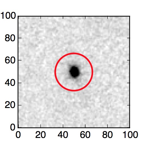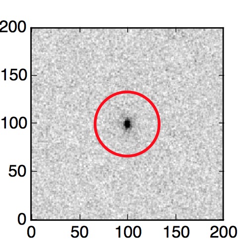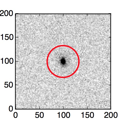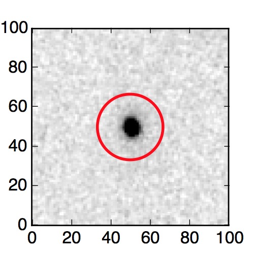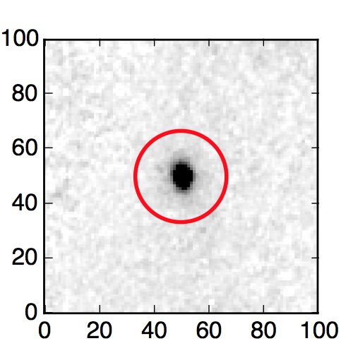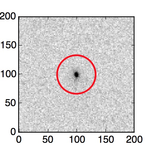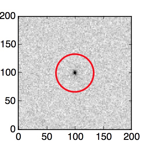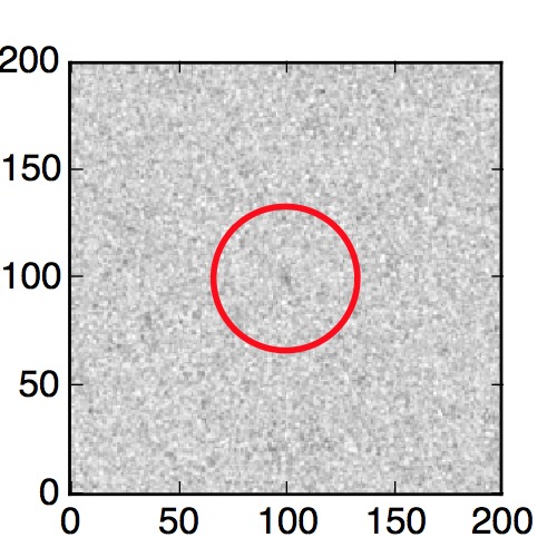 The red circle in the various panels is 1" in radius. The images are 6"x6".