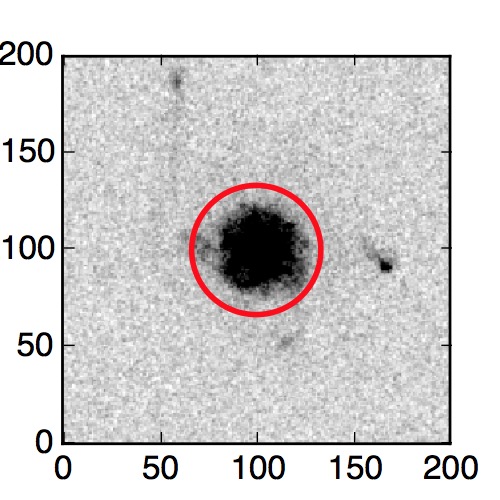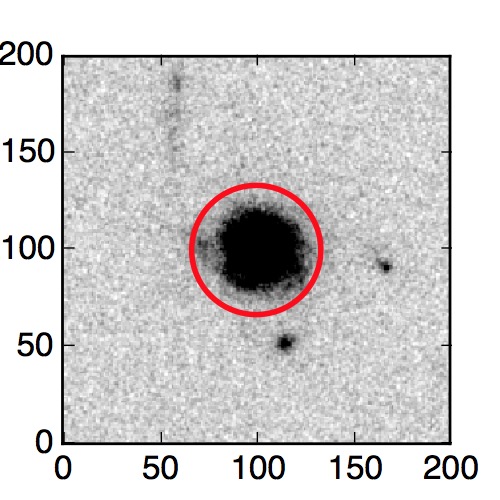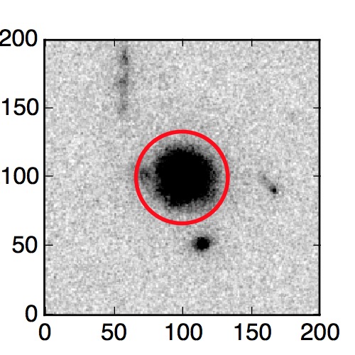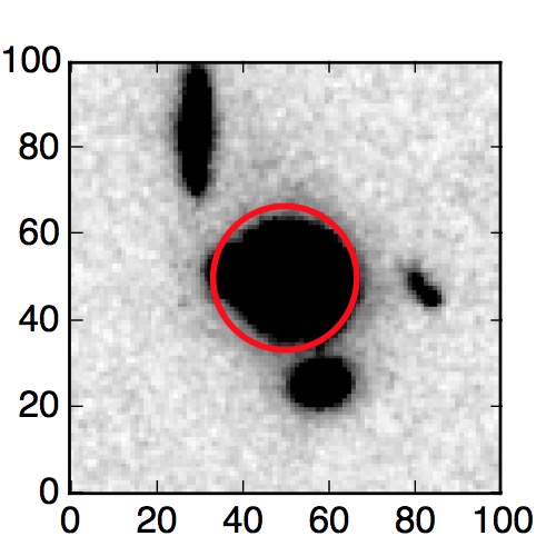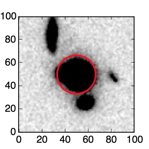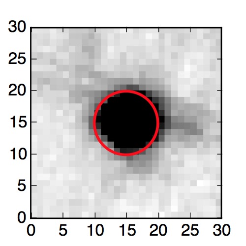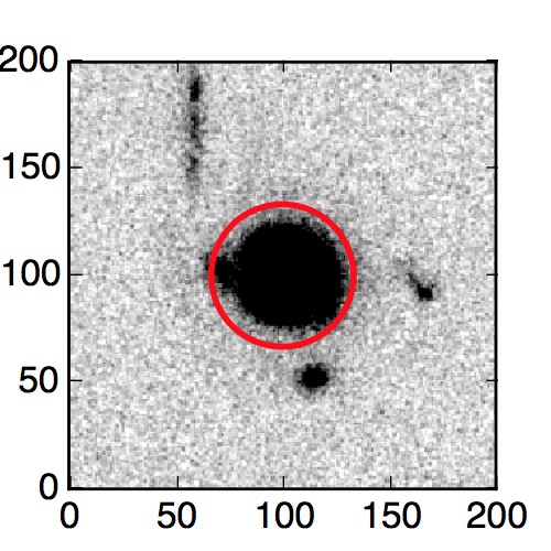 The red circle in the various panels is 1" in radius. The images are 6"x6".