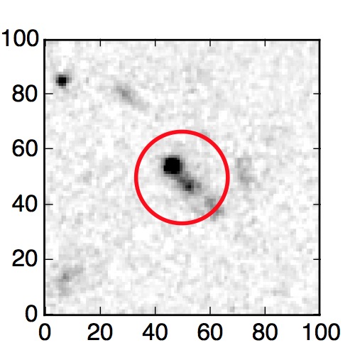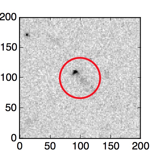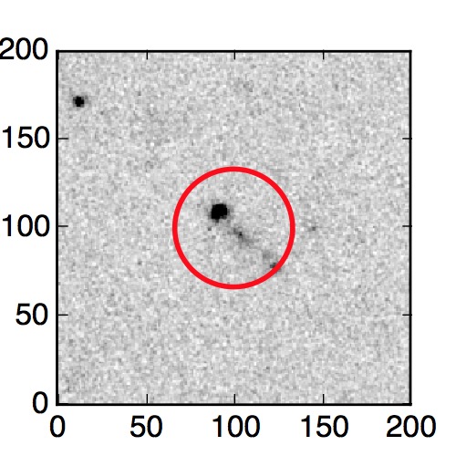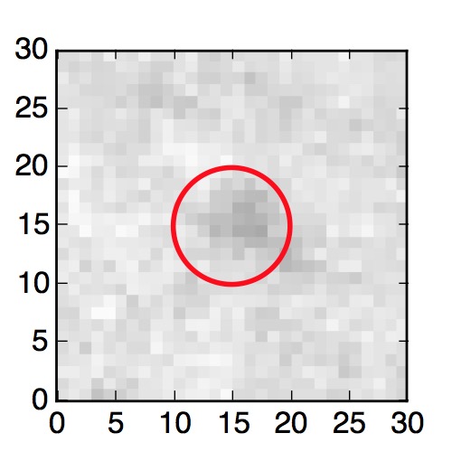 The red circle in the various panels is 1" in radius. The images are 6"x6".