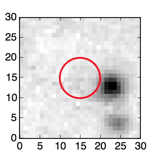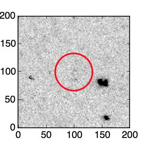 The red circle in the various panels is 1" in radius. The images are 6"x6".