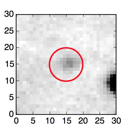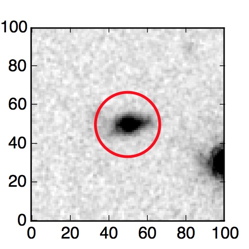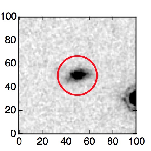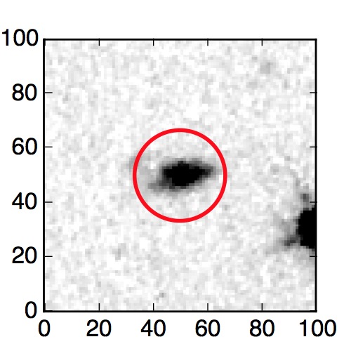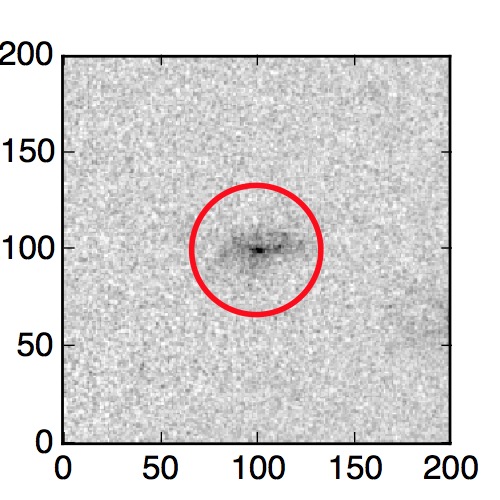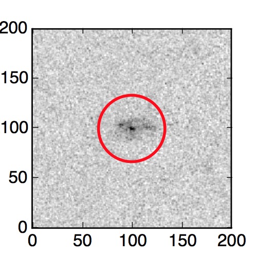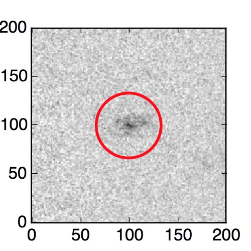 The red circle in the various panels is 1" in radius. The images are 6"x6".
