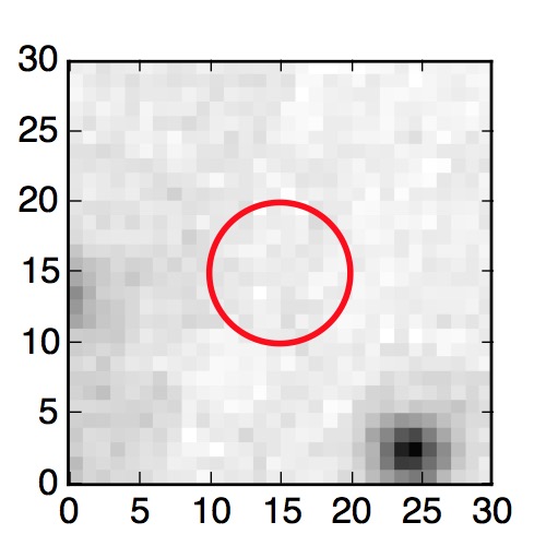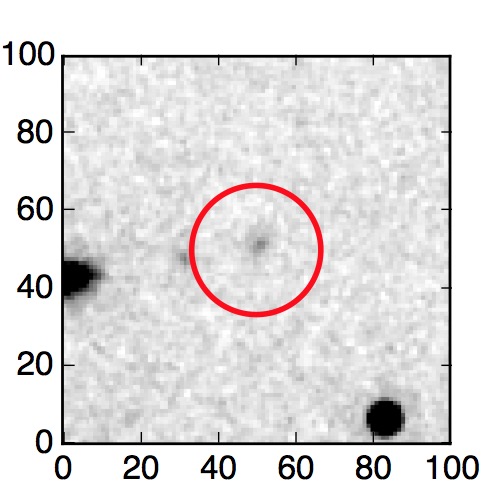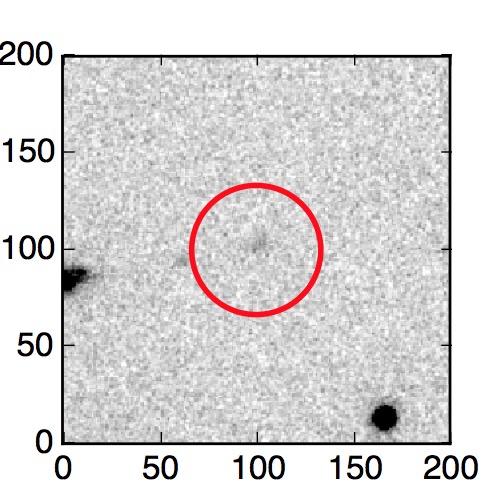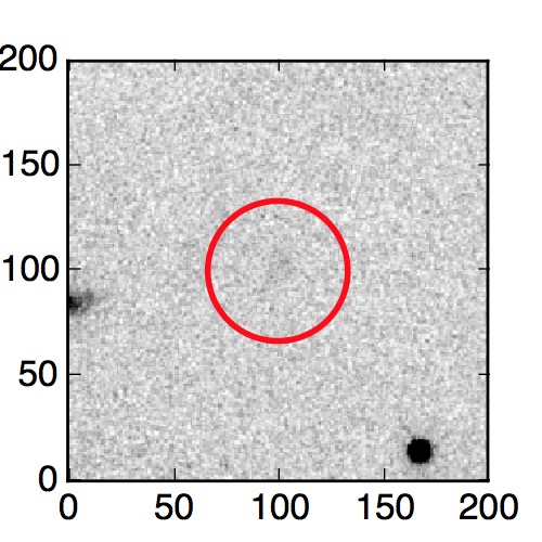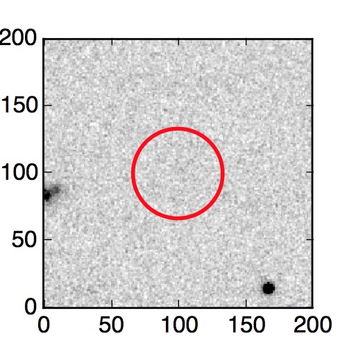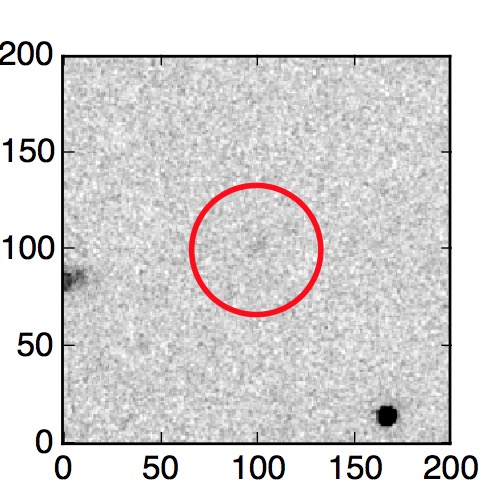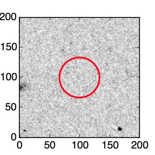 The red circle in the various panels is 1" in radius. The images are 6"x6".