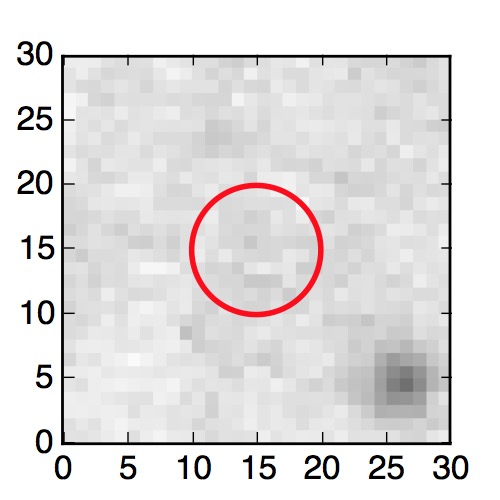 The red circle in the various panels is 1" in radius. The images are 6"x6".