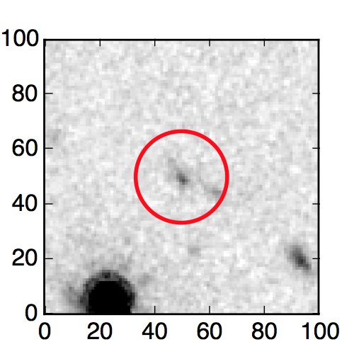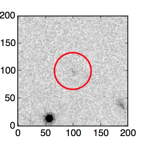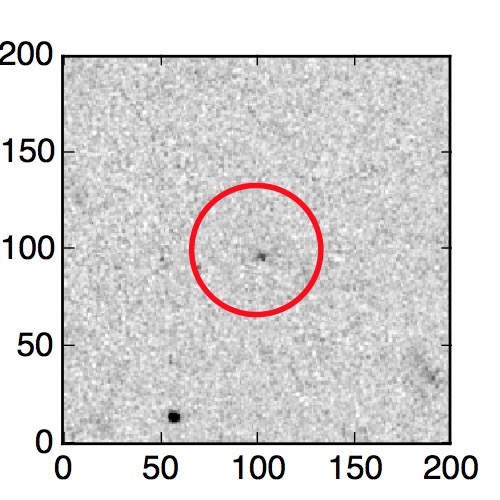 The red circle in the various panels is 1" in radius. The images are 6"x6".
