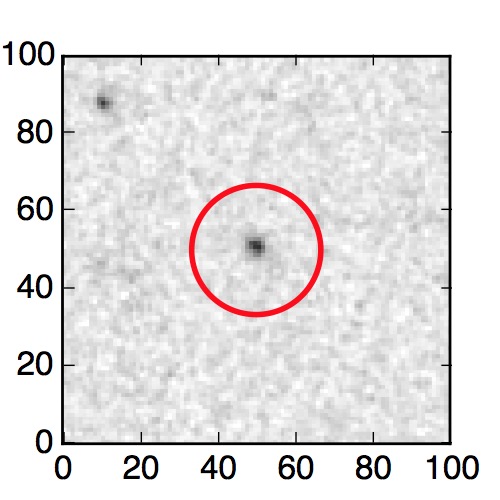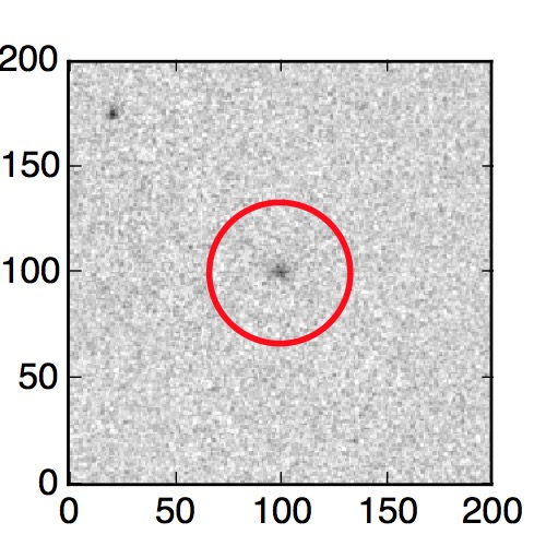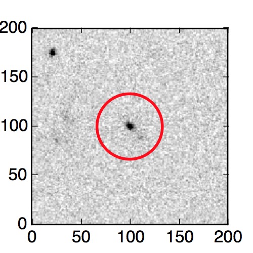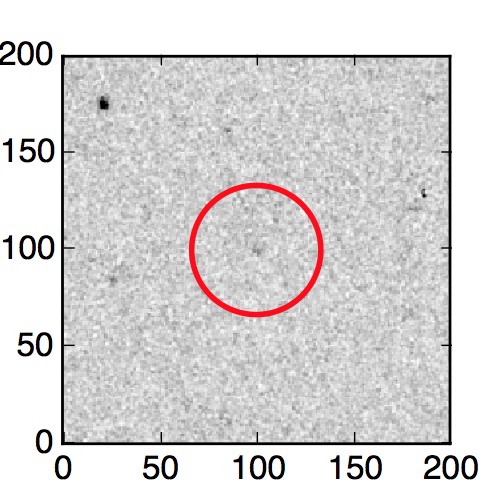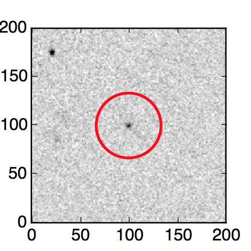 The red circle in the various panels is 1" in radius. The images are 6"x6".