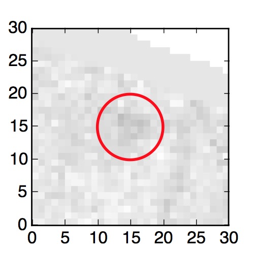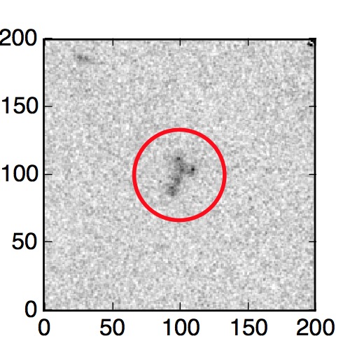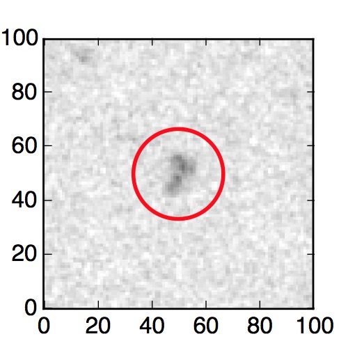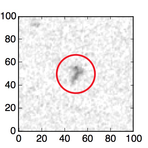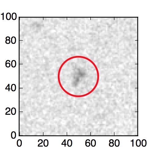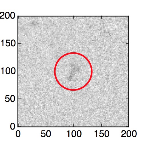 The red circle in the various panels is 1" in radius. The images are 6"x6".