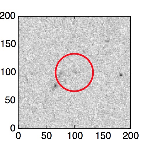 The red circle in the various panels is 1" in radius. The images are 6"x6".