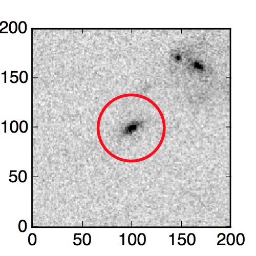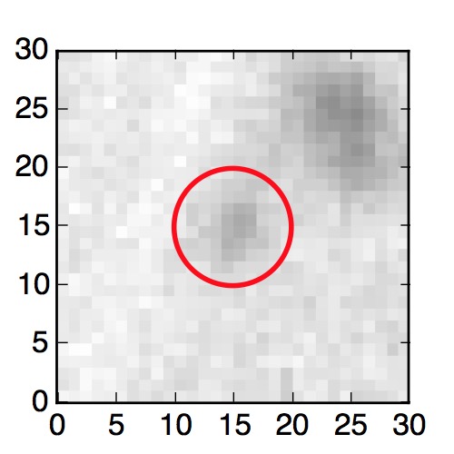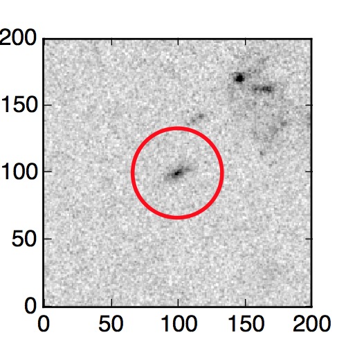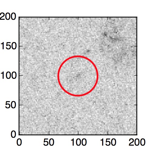 The red circle in the various panels is 1" in radius. The images are 6"x6".