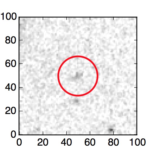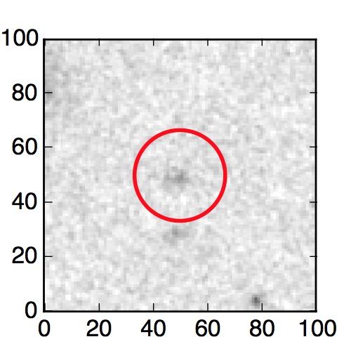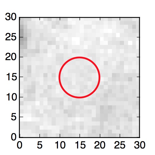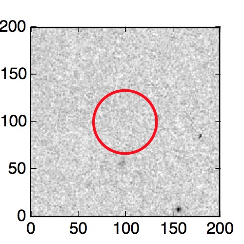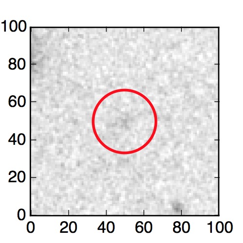 The red circle in the various panels is 1" in radius. The images are 6"x6".