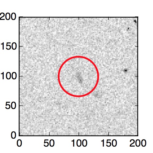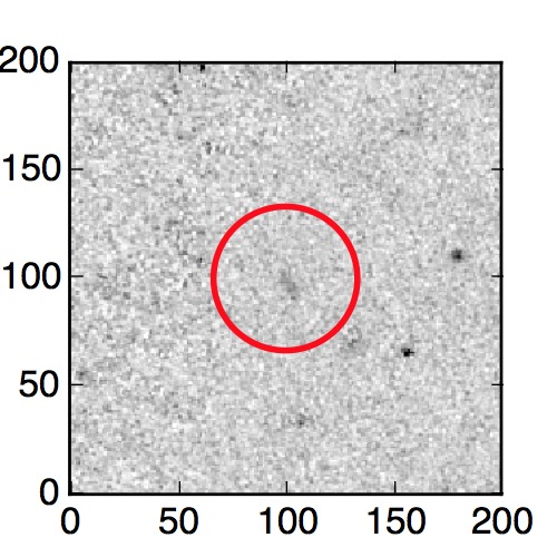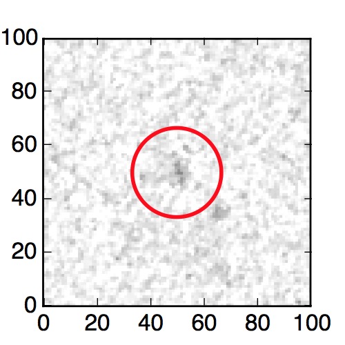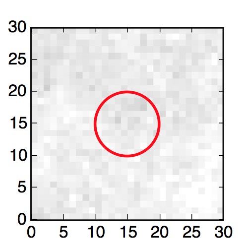The red circle in the various panels is 1" in radius. The images are 6"x6".