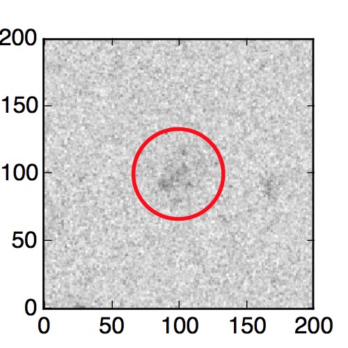 The red circle in the various panels is 1" in radius. The images are 6"x6".