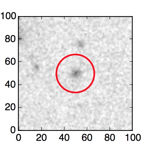 The red circle in the various panels is 1" in radius. The images are 6"x6".