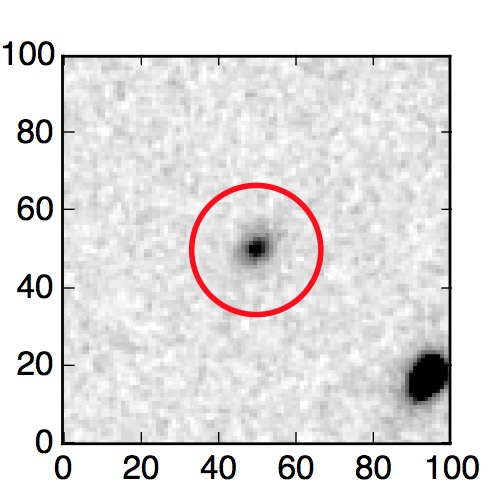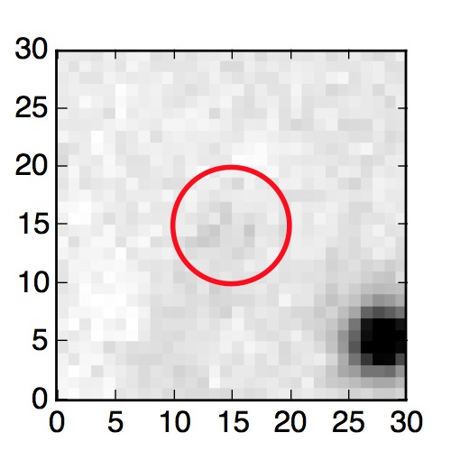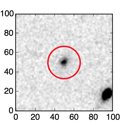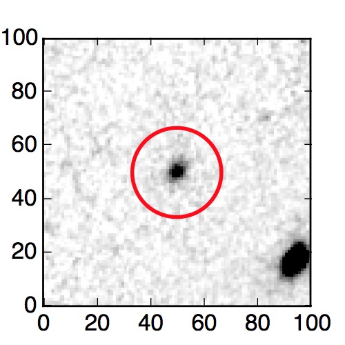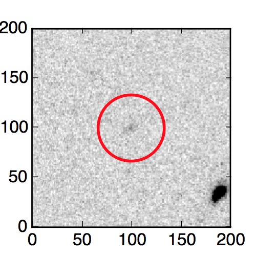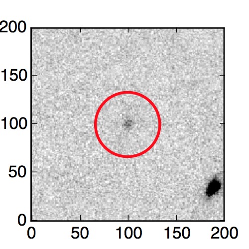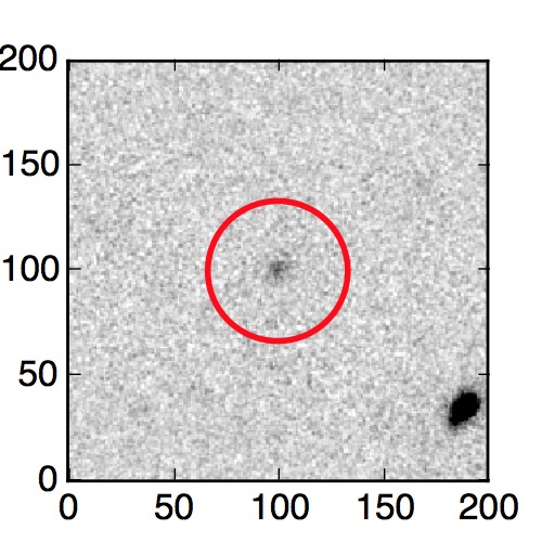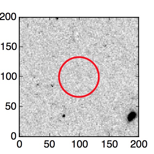 The red circle in the various panels is 1" in radius. The images are 6"x6".