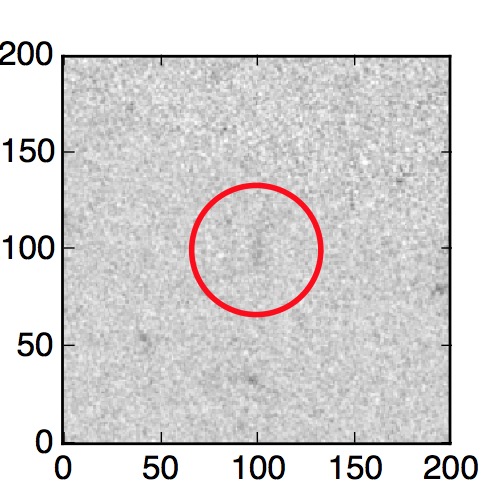 The red circle in the various panels is 1" in radius. The images are 6"x6".