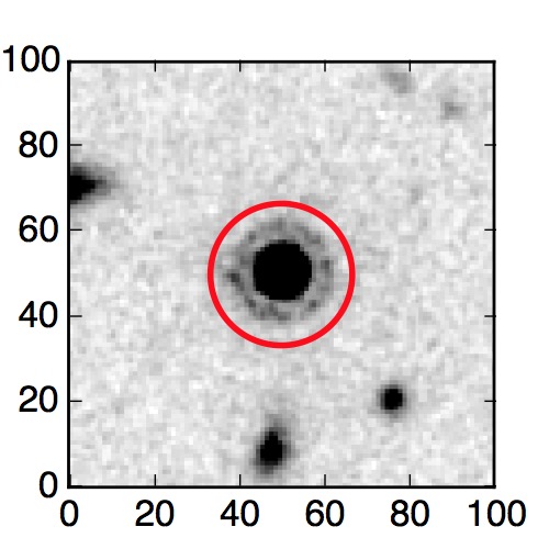 The red circle in the various panels is 1" in radius. The images are 6"x6".