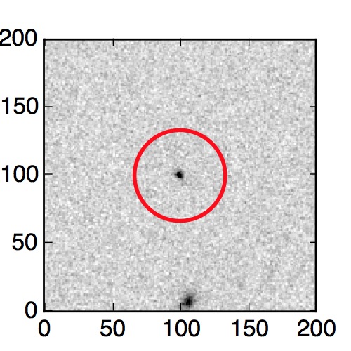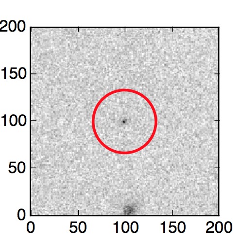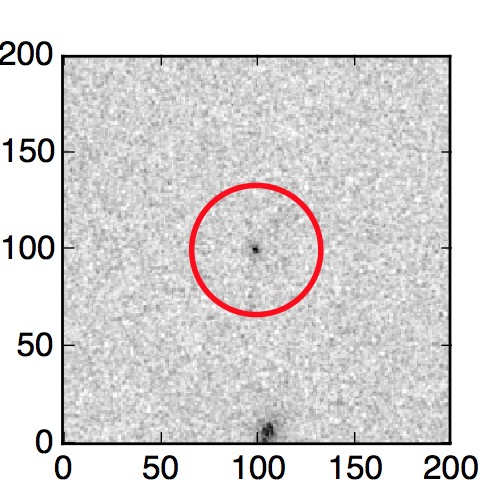 The red circle in the various panels is 1" in radius. The images are 6"x6".