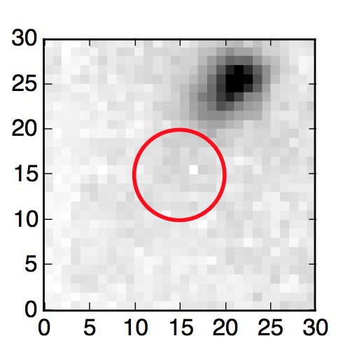 The red circle in the various panels is 1" in radius. The images are 6"x6".