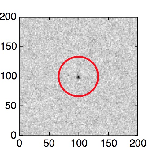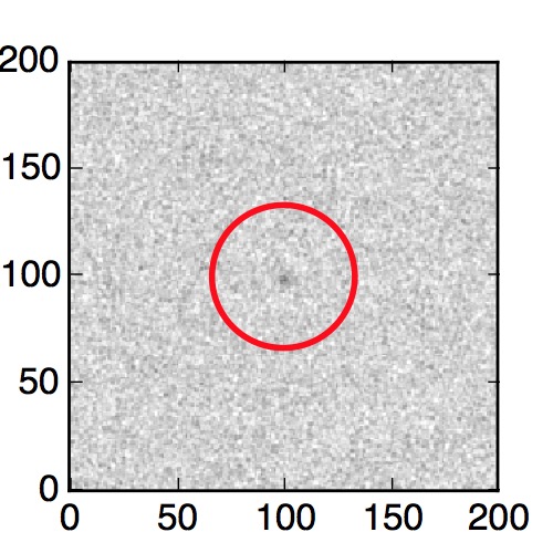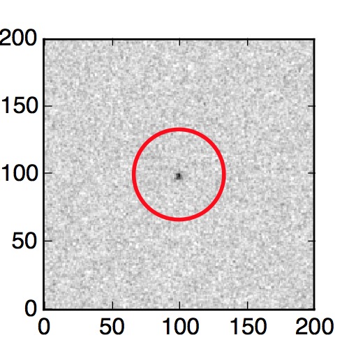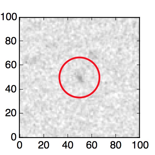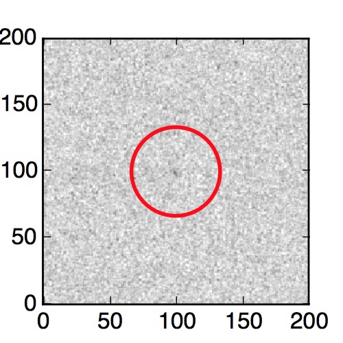 The red circle in the various panels is 1" in radius. The images are 6"x6".