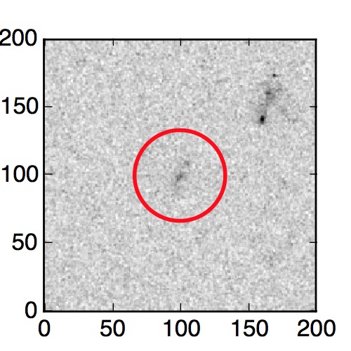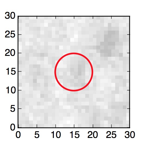 The red circle in the various panels is 1" in radius. The images are 6"x6".