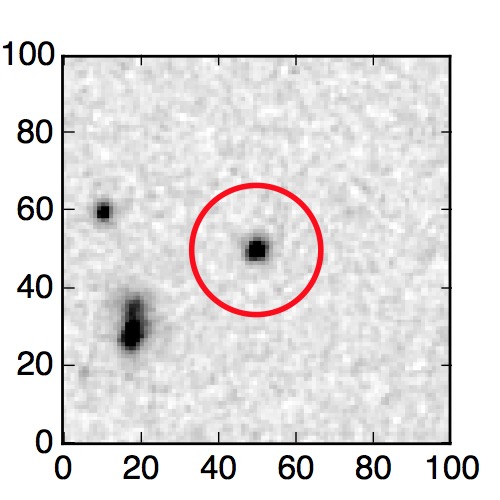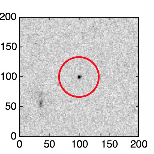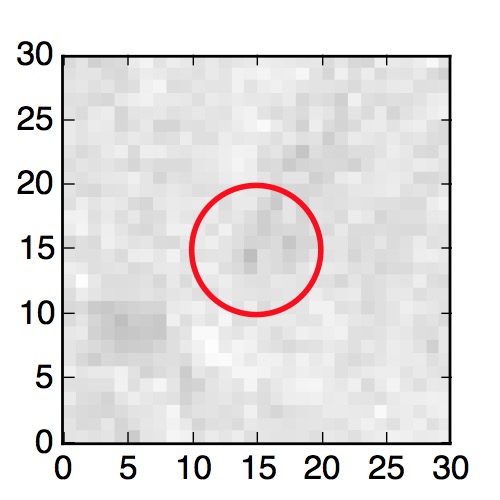 The red circle in the various panels is 1" in radius. The images are 6"x6".