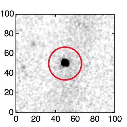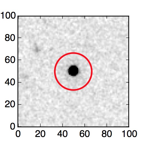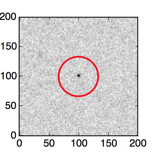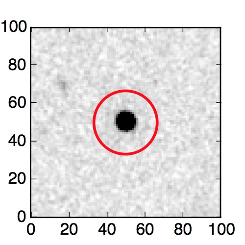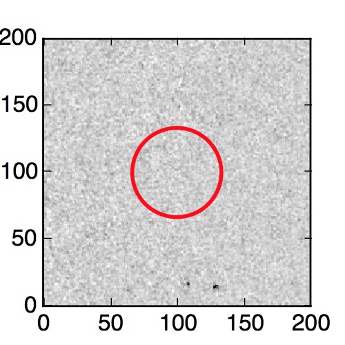The red circle in the various panels is 1" in radius. The images are 6"x6".