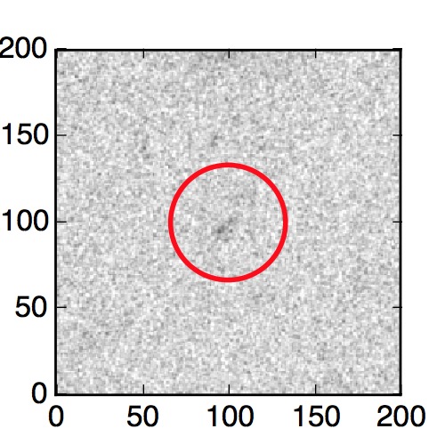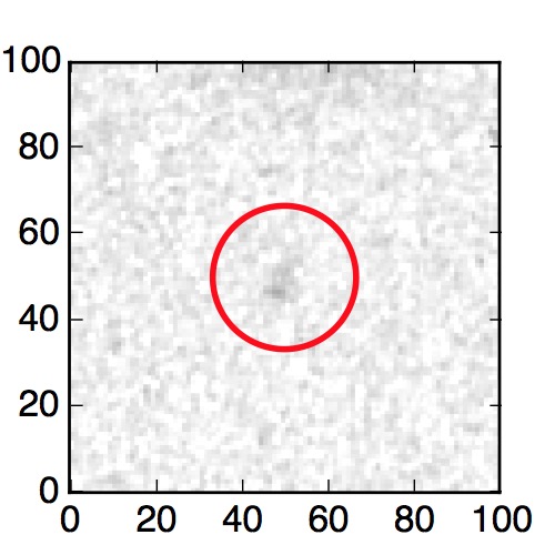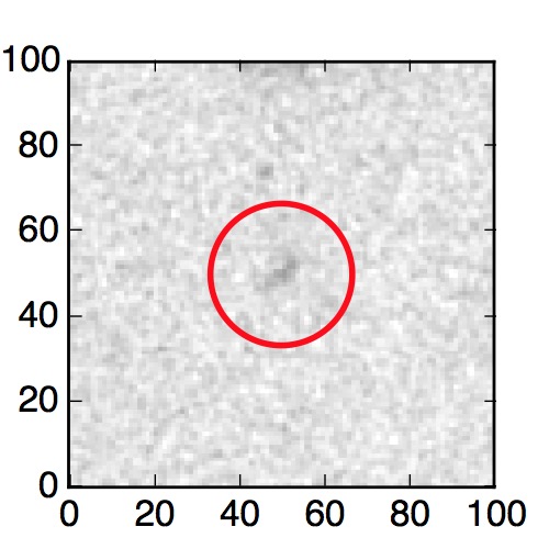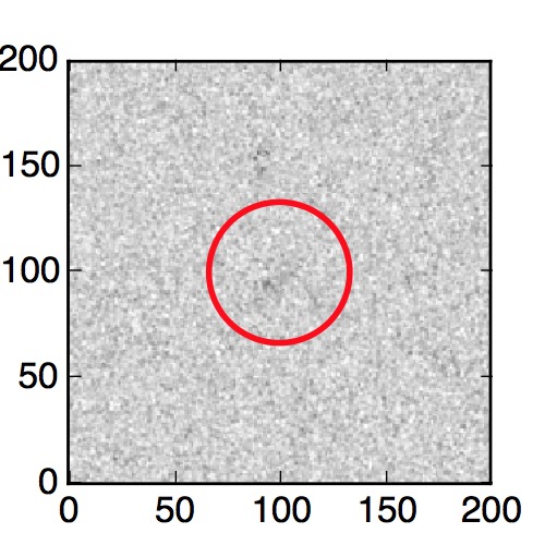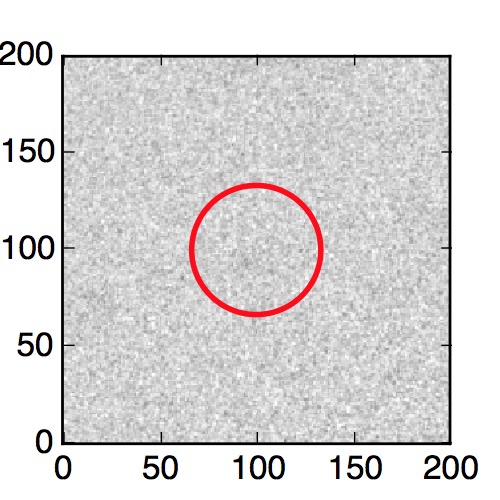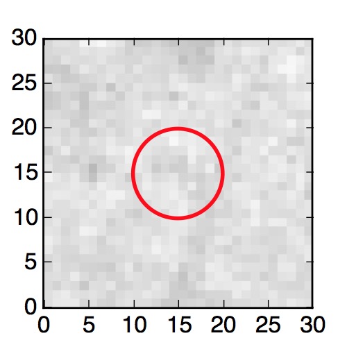 The red circle in the various panels is 1" in radius. The images are 6"x6".