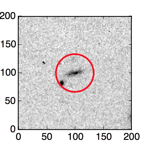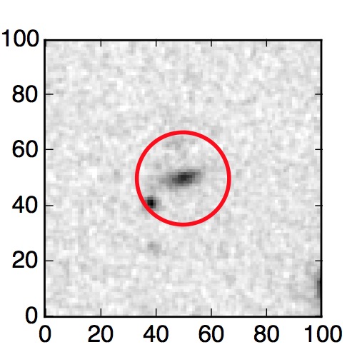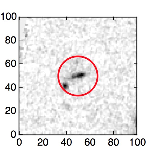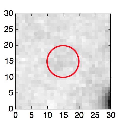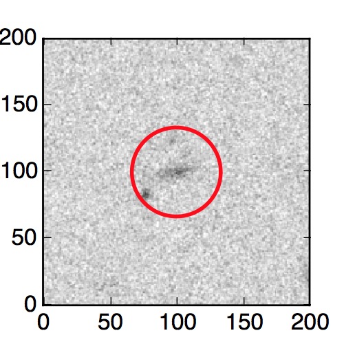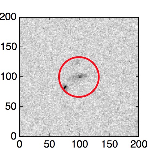 The red circle in the various panels is 1" in radius. The images are 6"x6".