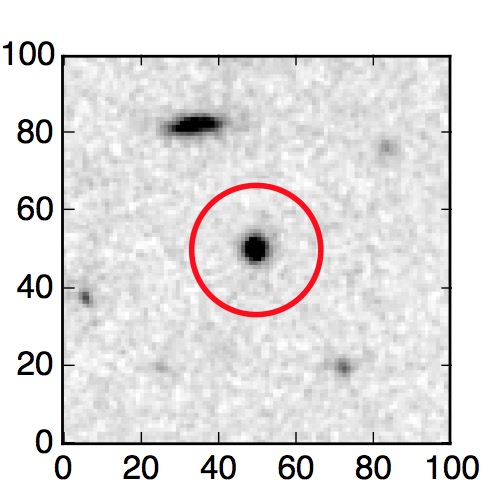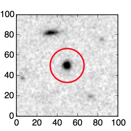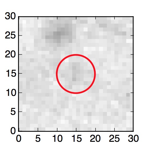 The red circle in the various panels is 1" in radius. The images are 6"x6".