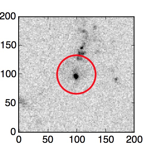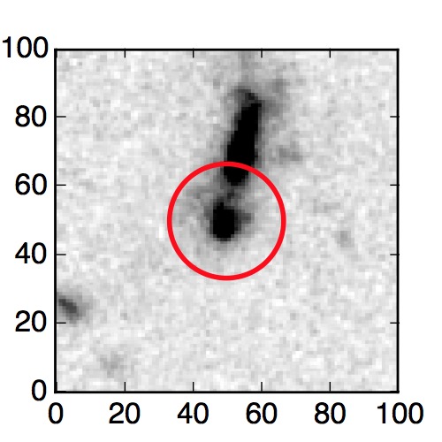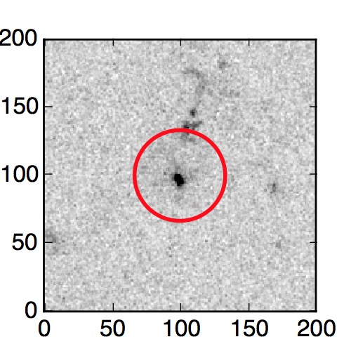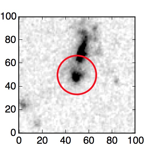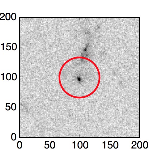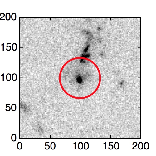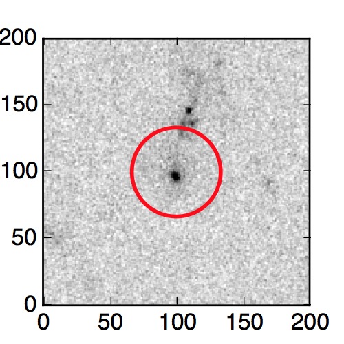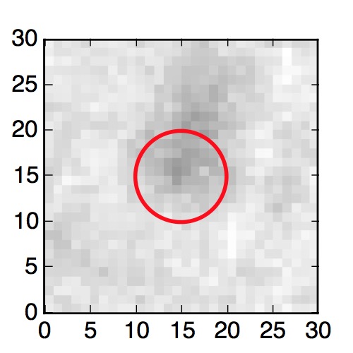 The red circle in the various panels is 1" in radius. The images are 6"x6".