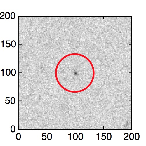 The red circle in the various panels is 1" in radius. The images are 6"x6".