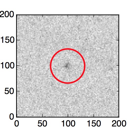 The red circle in the various panels is 1" in radius. The images are 6"x6".