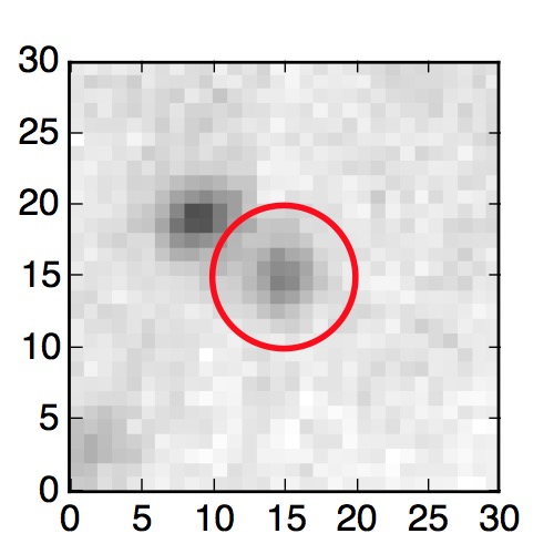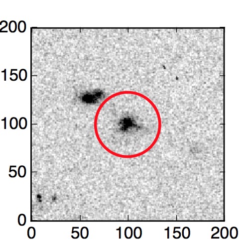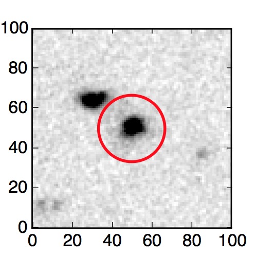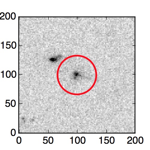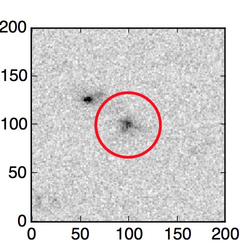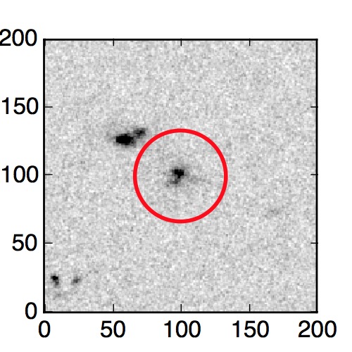 The red circle in the various panels is 1" in radius. The images are 6"x6".