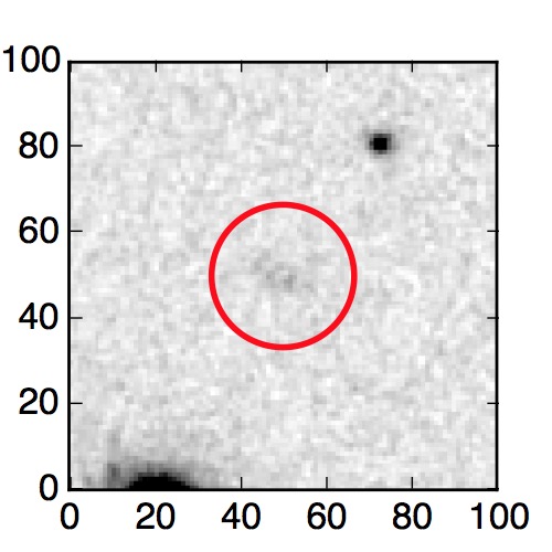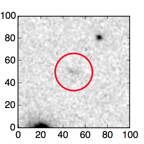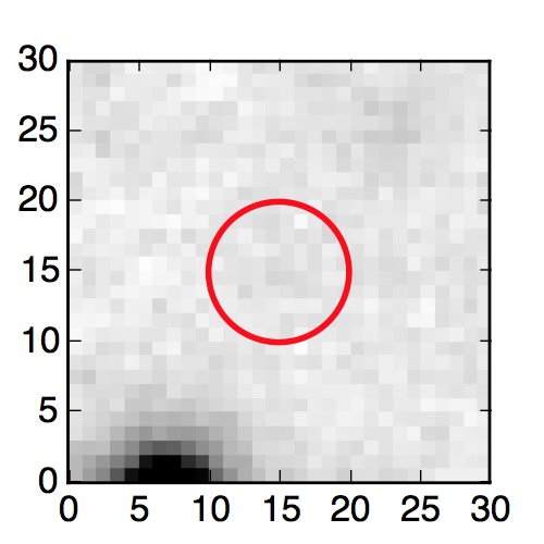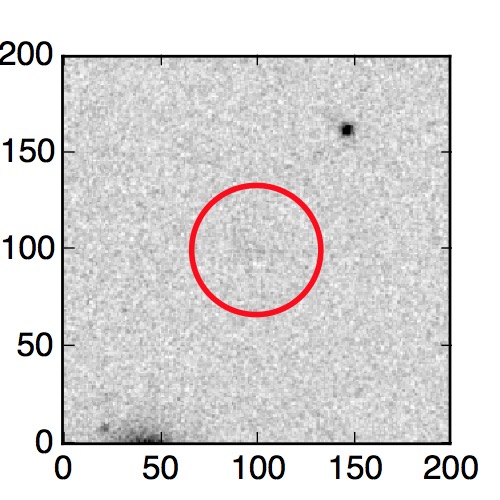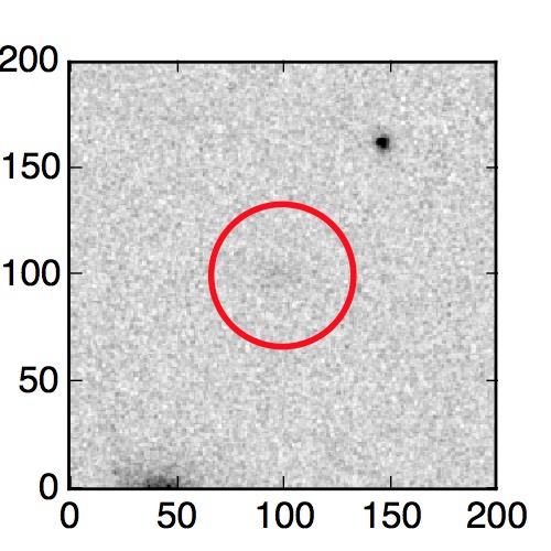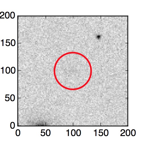 The red circle in the various panels is 1" in radius. The images are 6"x6".