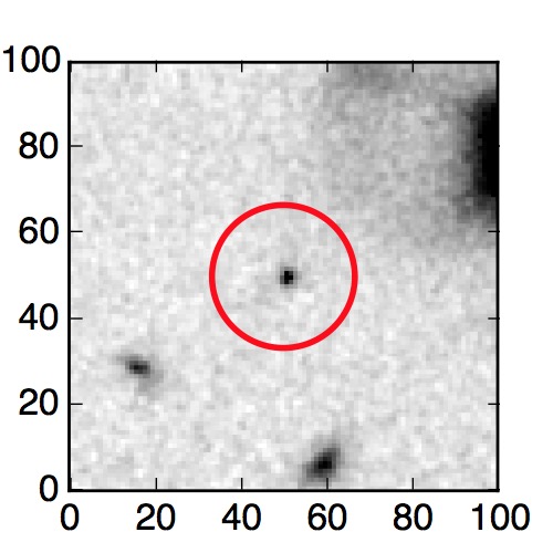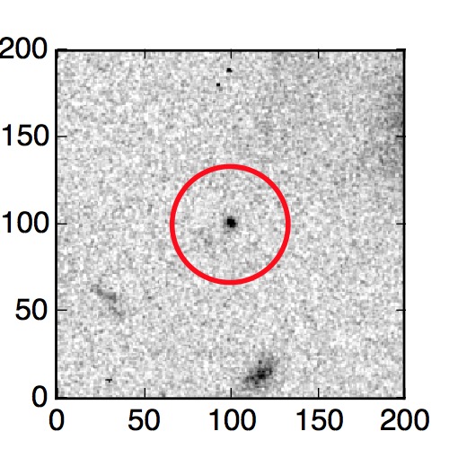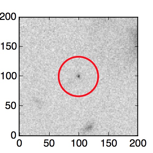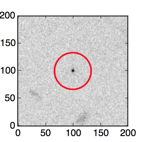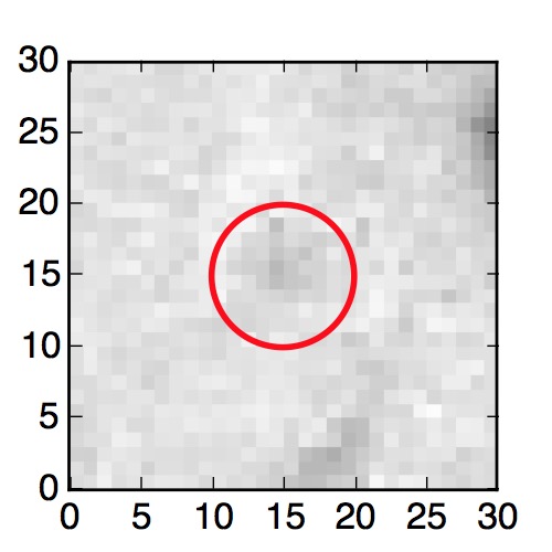 The red circle in the various panels is 1" in radius. The images are 6"x6".