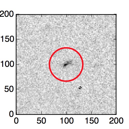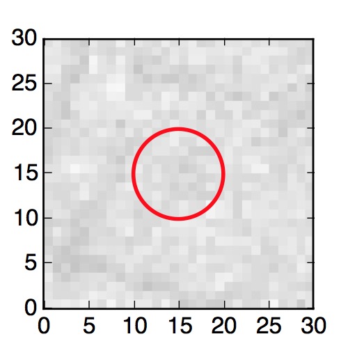 The red circle in the various panels is 1" in radius. The images are 6"x6".