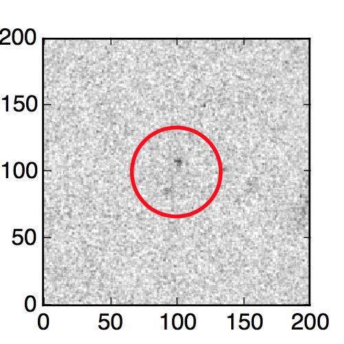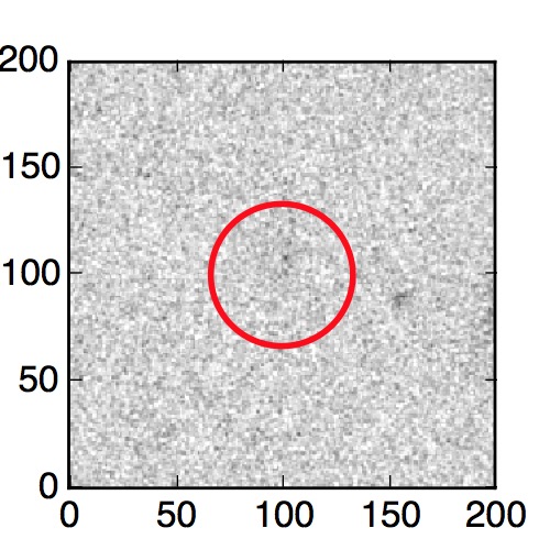 The red circle in the various panels is 1" in radius. The images are 6"x6".