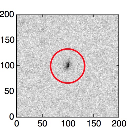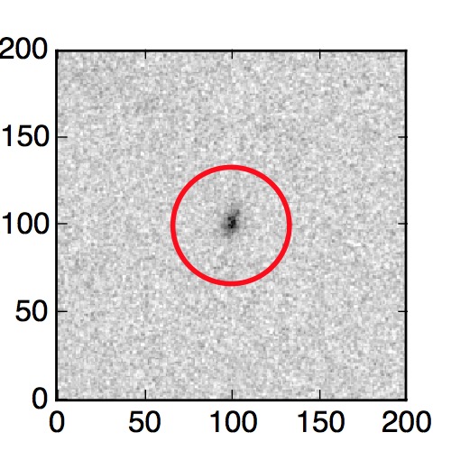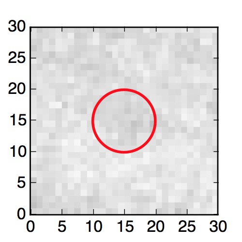The red circle in the various panels is 1" in radius. The images are 6"x6".