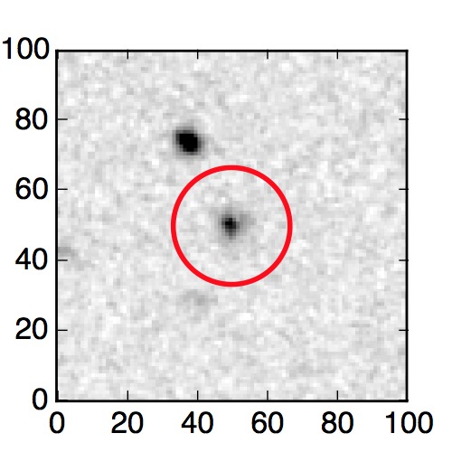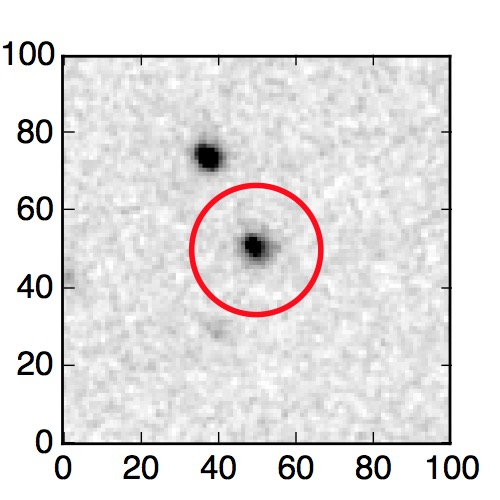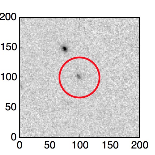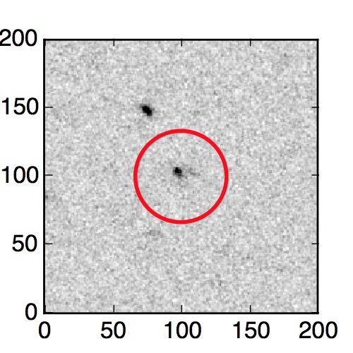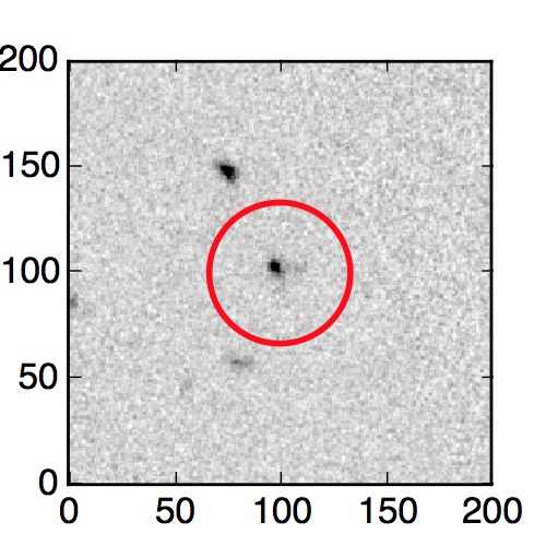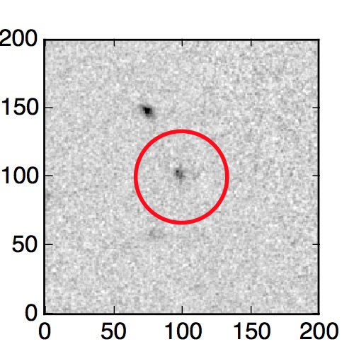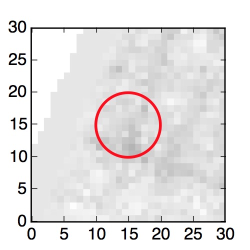 The red circle in the various panels is 1" in radius. The images are 6"x6".