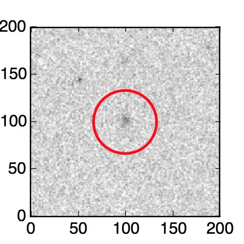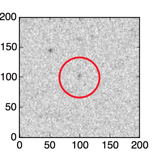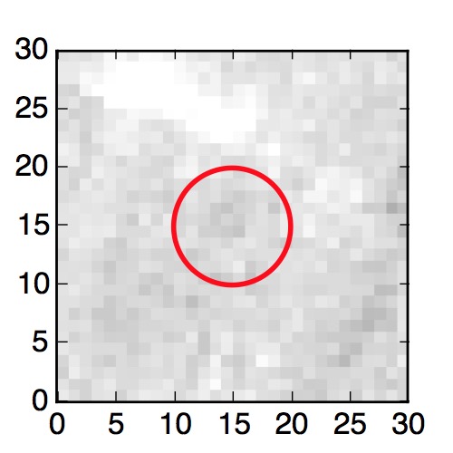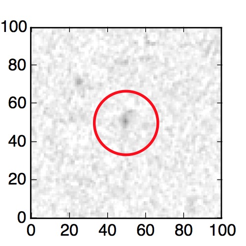 The red circle in the various panels is 1" in radius. The images are 6"x6".