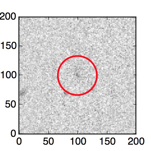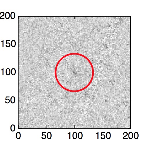 The red circle in the various panels is 1" in radius. The images are 6"x6".