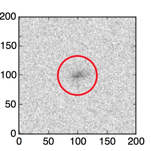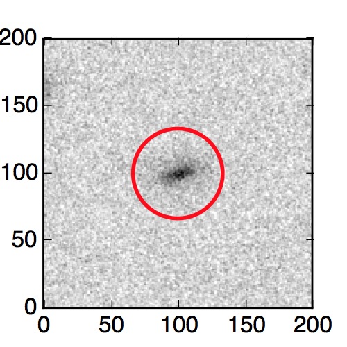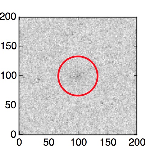 The red circle in the various panels is 1" in radius. The images are 6"x6".