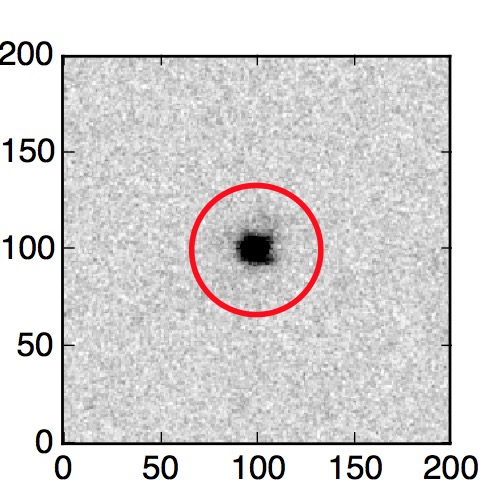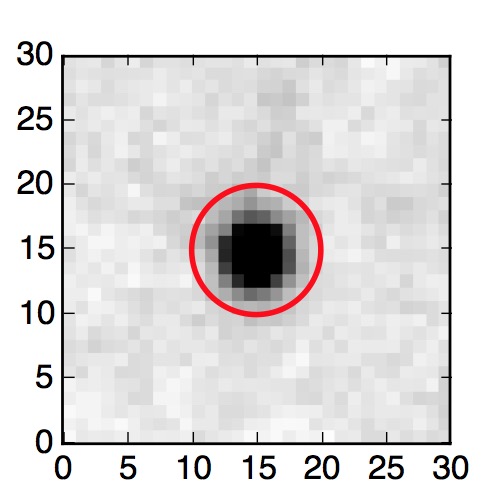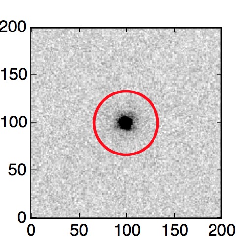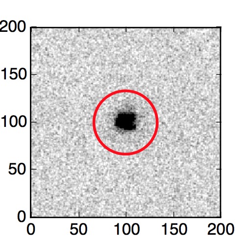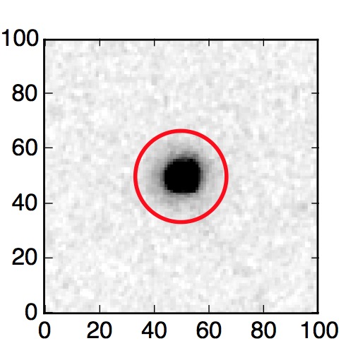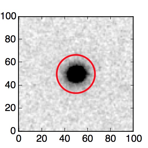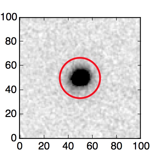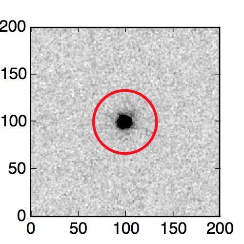 The red circle in the various panels is 1" in radius. The images are 6"x6".