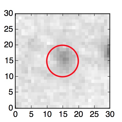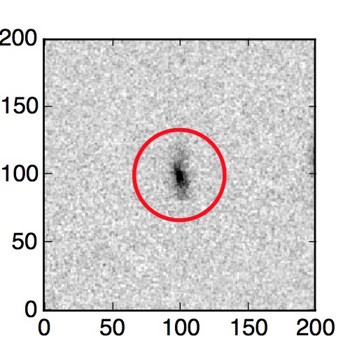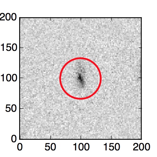 The red circle in the various panels is 1" in radius. The images are 6"x6".