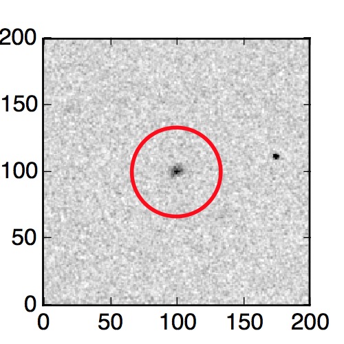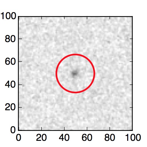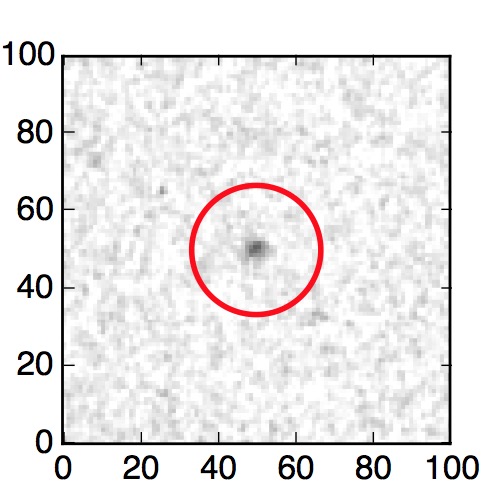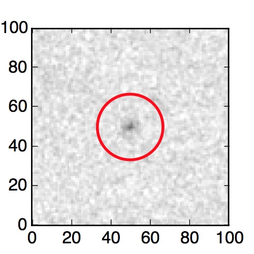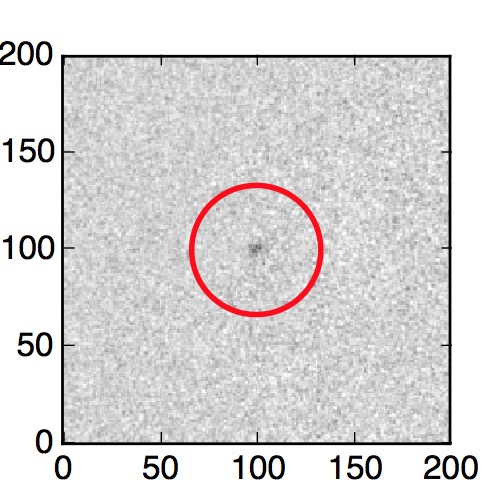 The red circle in the various panels is 1" in radius. The images are 6"x6".