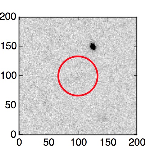 The red circle in the various panels is 1" in radius. The images are 6"x6".
