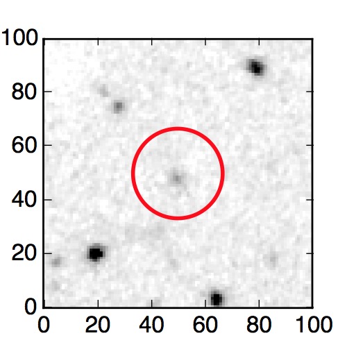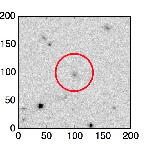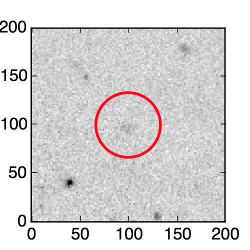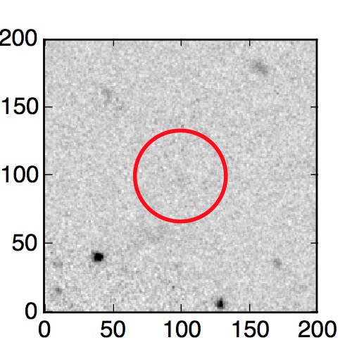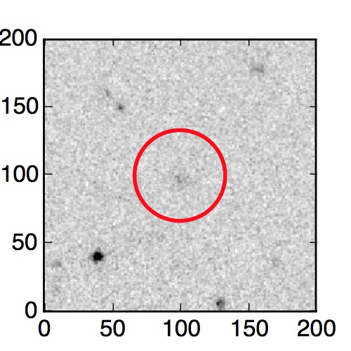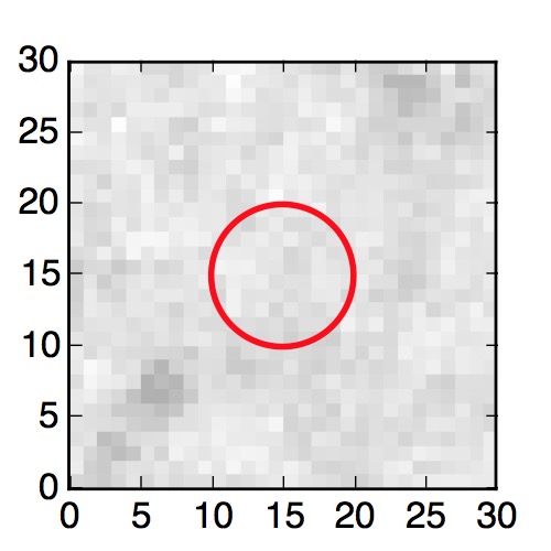 The red circle in the various panels is 1" in radius. The images are 6"x6".