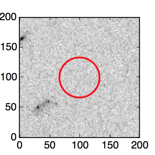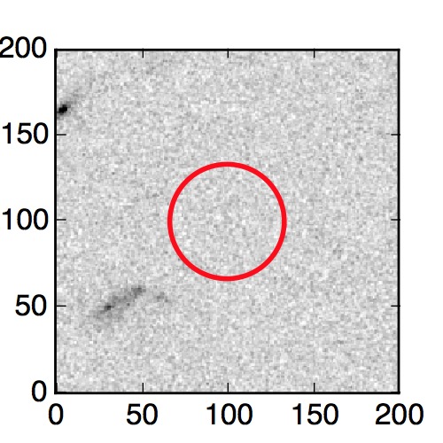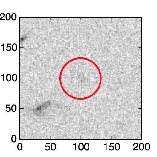 The red circle in the various panels is 1" in radius. The images are 6"x6".
