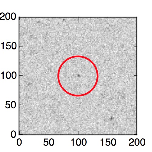 The red circle in the various panels is 1" in radius. The images are 6"x6".