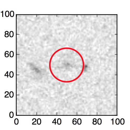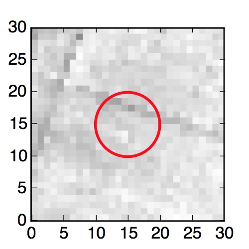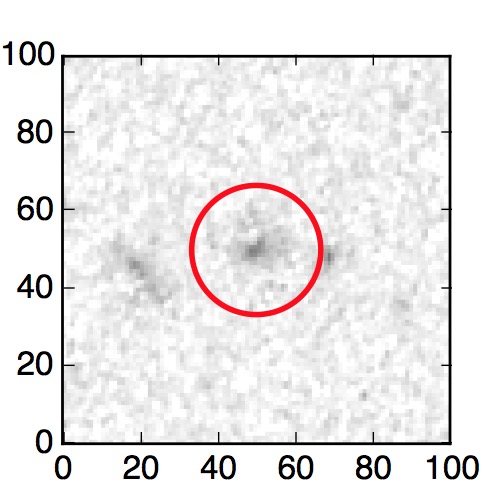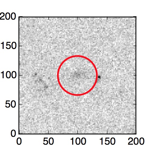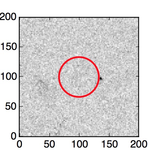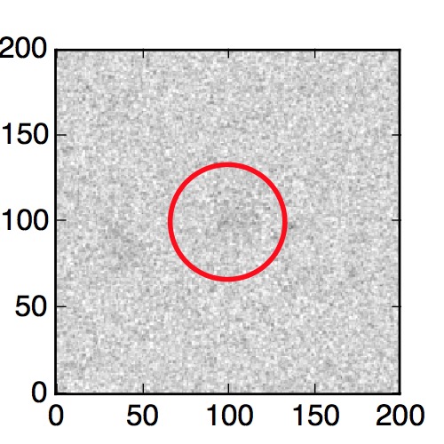 The red circle in the various panels is 1" in radius. The images are 6"x6".